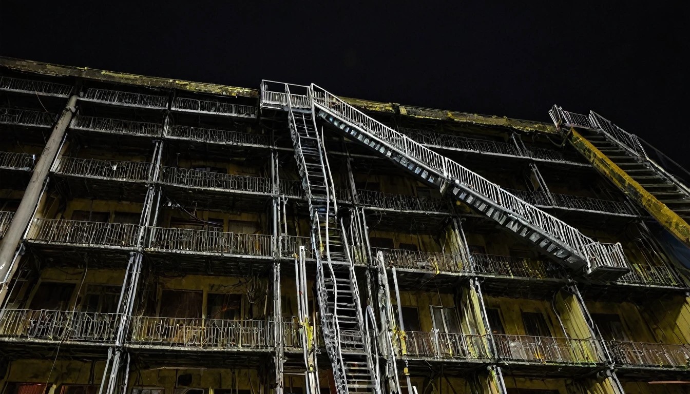 雨上がりの夜、中年サラリーマンの佐藤は、溜息をつきながら古いビルの非常階段を下りていた。残業続きで疲れ果て、一刻も早く家に帰りたい気持ちでいっぱいだった。