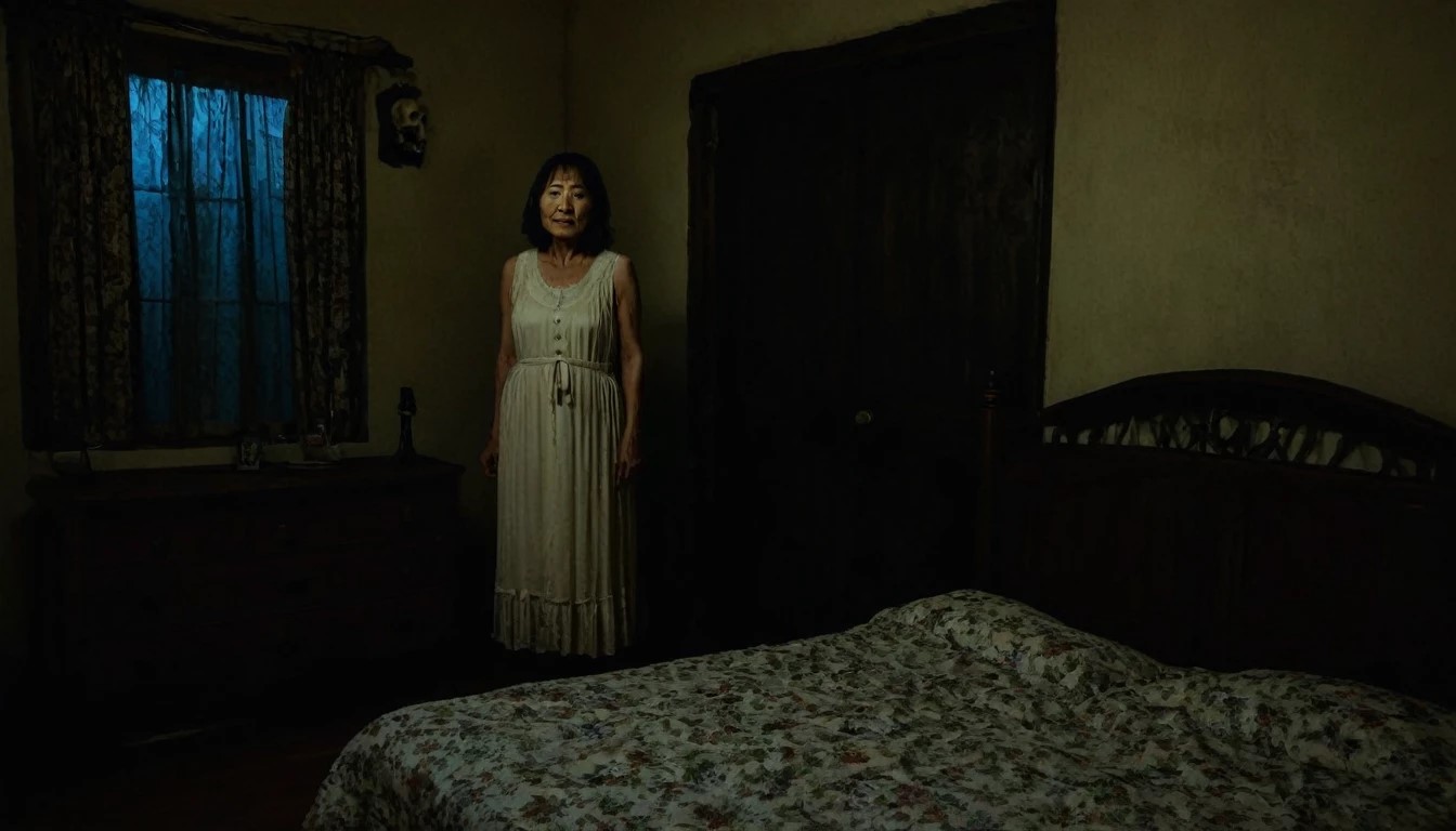 そのとき、部屋の隅に人影が見えた。私は凍りついた。母だった。今度は笑顔も怒りもなく、ただ悲しそうな表情で私を見つめていた。
